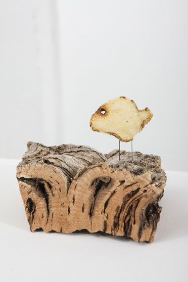 <<<< takaisin / back "Kala" 2013. Puu(korkki), sipsi, lakka,rauta / "Fish" 2013. Wood (cork), chips, lacquer, iron