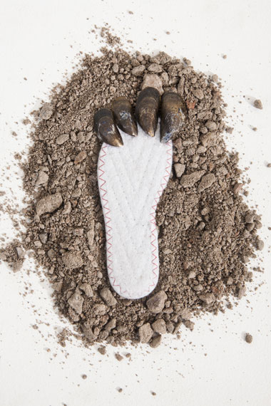 <<<< takaisin / back mummu, pappa, Leo, äiti. 2013. Pohjallinen (koko 22), simpukan kuoret,hiekka. / Granny, Grandpa, Leo, Mother. 2013. insole (size 22), cells, sand.