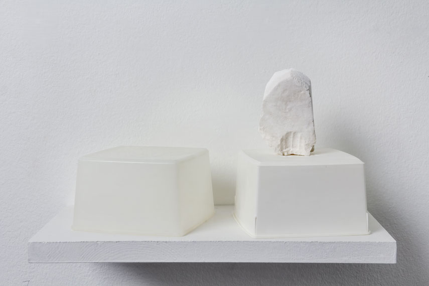 <<<< takaisin / back Puremia ja hampaita. 2014. Muovipurkit, kipsivalu parmesaanijuustosta. 30cm x 15cm x 10cm / Bites and Teeth, 2014. Plastic boxes, plaster cast from parmesan cheese. 30cm x 15cm x 10cm